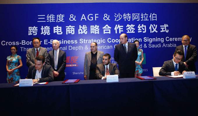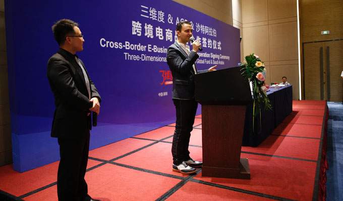 Mr. Tarek Choufani, SinoAm Fund Managing Director, gives keynote speech on innovation of ECommerce and the launching of Sino-Arab-European- American one-stop B2C E-commerce solution. During the ceremony, the Joint Venture Agreement is signed between SinoAm Fund, 3Weidu, and 4PX who is providing logistics. The JV operations are officially launched.